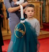Christening candle with custom colour tulle and acrylic letter.